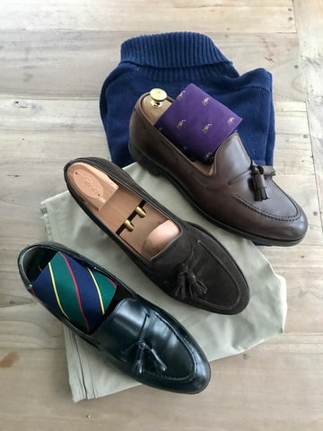 Wat betreft pakken en jasjes houd ik het lekker klassiek. Een faux pas die ik wel ga proberen is zwarte penny's of tassels onder een jeans. Met zo'n dun riempje erboven.
